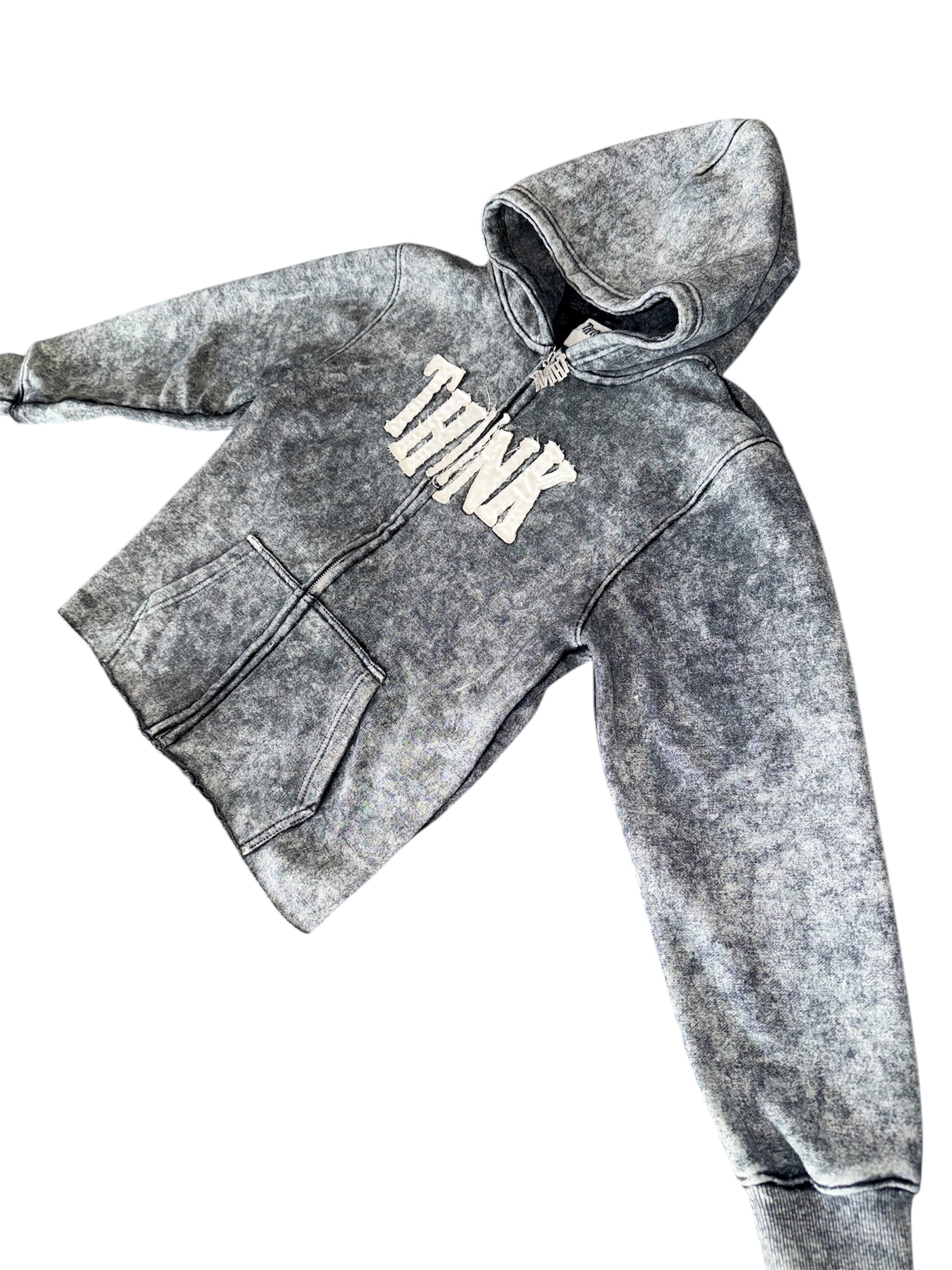 Washed THINK Zip Hoodie Set (Blk/Grey) — Hoodie + Pants